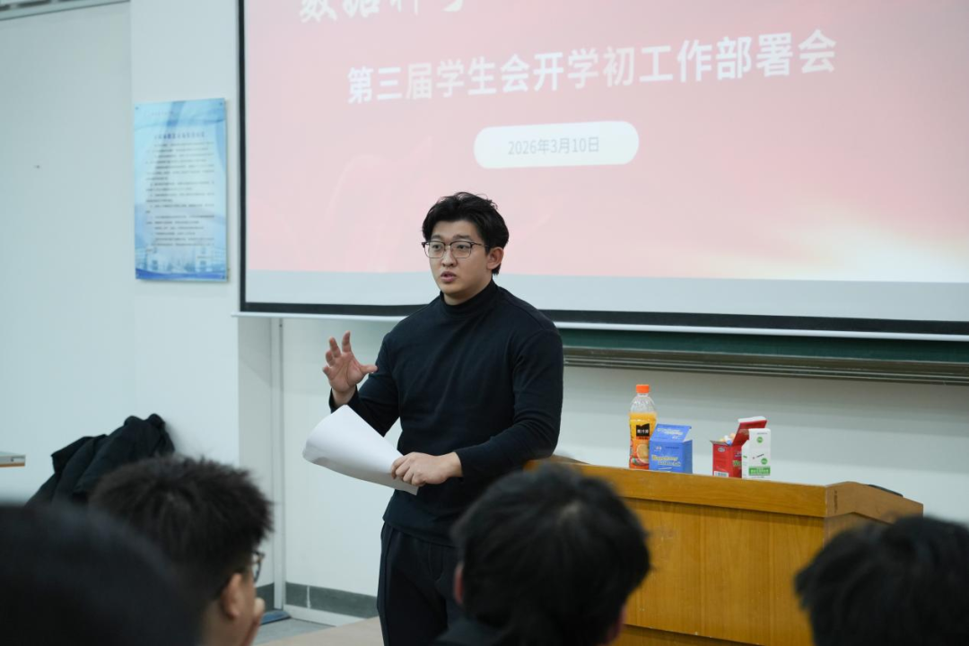 为了精准锚定新学期工作方向,强化学生骨干责任意识,提升组织服务效能,数据科学与信息工程学院第三届学生会于3月10日在教二202召开新学期工作部署会。本次会议围绕“为何加入、想学什么、收获什么”三个问题开展新学期重点工作和学生思想指导,进一步明确责任、凝聚共识。通过直击初心的交流研讨,强化思想引领与价值导向,推动全体成员以更清晰的目标、更务实的作风投入新学期工作。数据科学与信息工程学院学生发展中心副主任兼团总支书记藏成泽老师及数据学院第三届学生会全体成员参会。