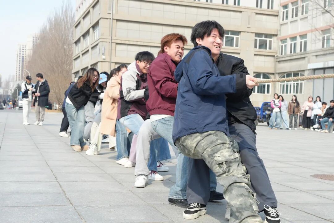 本次比赛延续抽签分组、淘汰晋级的赛制。随着裁判哨声响起,决赛正式拉开帷幕!参赛队员们紧握长绳、重心后倾,步调一致,每一寸长绳的拉锯都凝聚着全班的力量。红绸在中线间来回摆动,胜负悬于一线,队员们齐声喊出口号,用尽全力向后拉扯,展现出顽强拼搏的体育精神与强大的班级凝聚力。