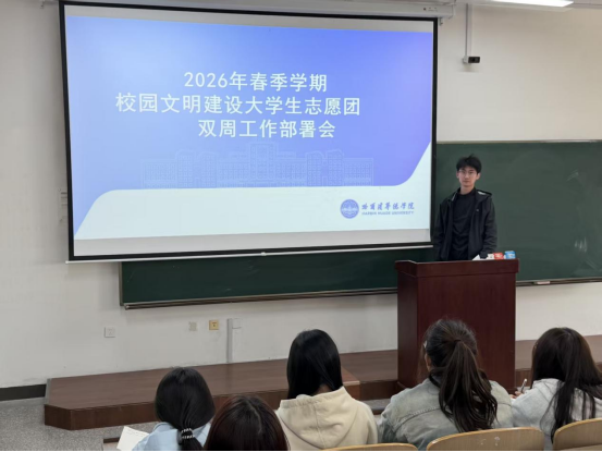 为落实学校2026年春季学期校园文明建设工作要求,强化志愿服务规范,发挥志愿团与入党积极分子先锋作用,近日,数据科学与信息工程学院召开校园文明建设大学生志愿团工作部署会。会议聚焦执勤规范、责任担当、文明劝导核心工作,由志愿团指导教师荆龙鑫主持,全体志愿团成员参会。