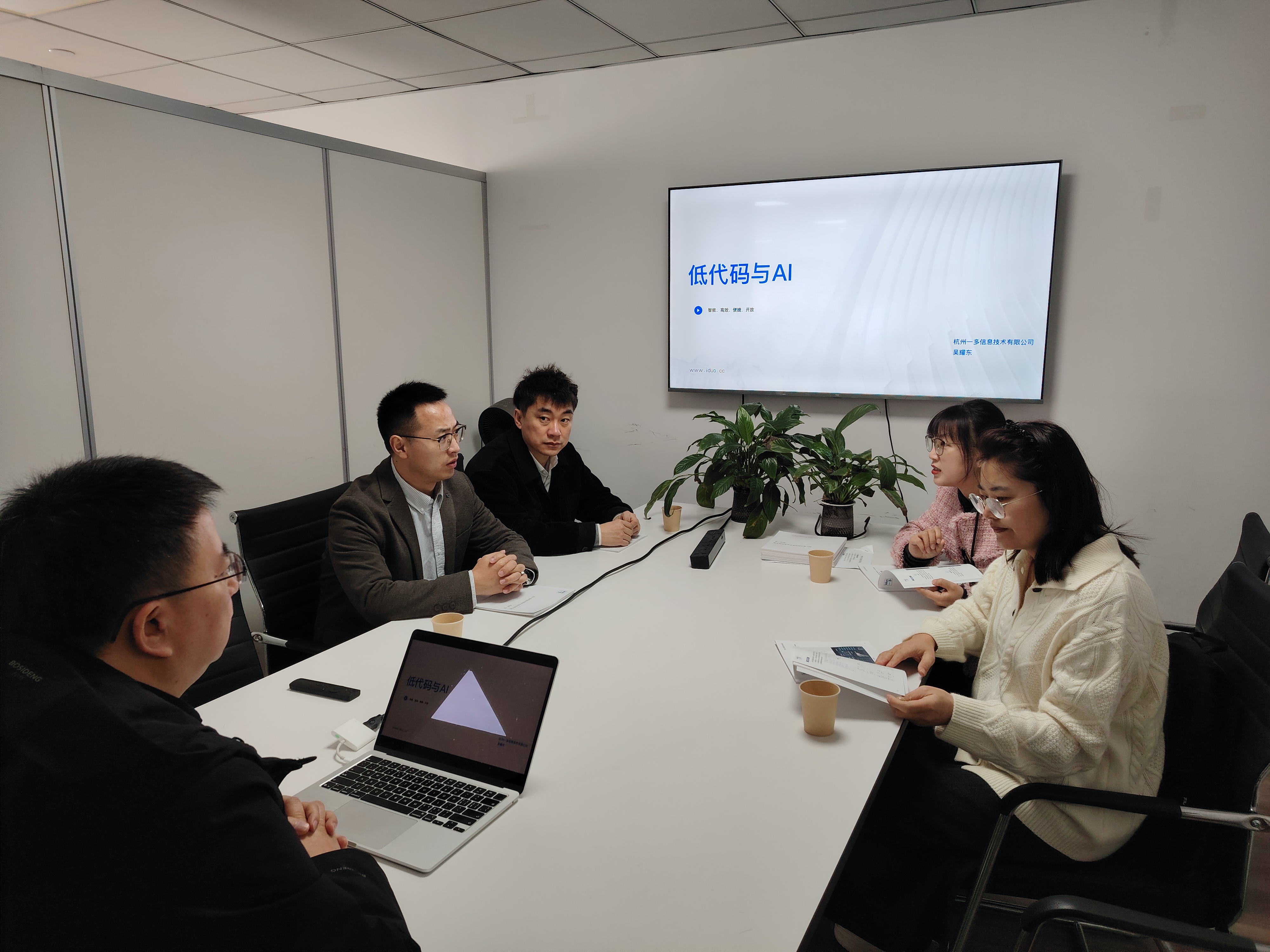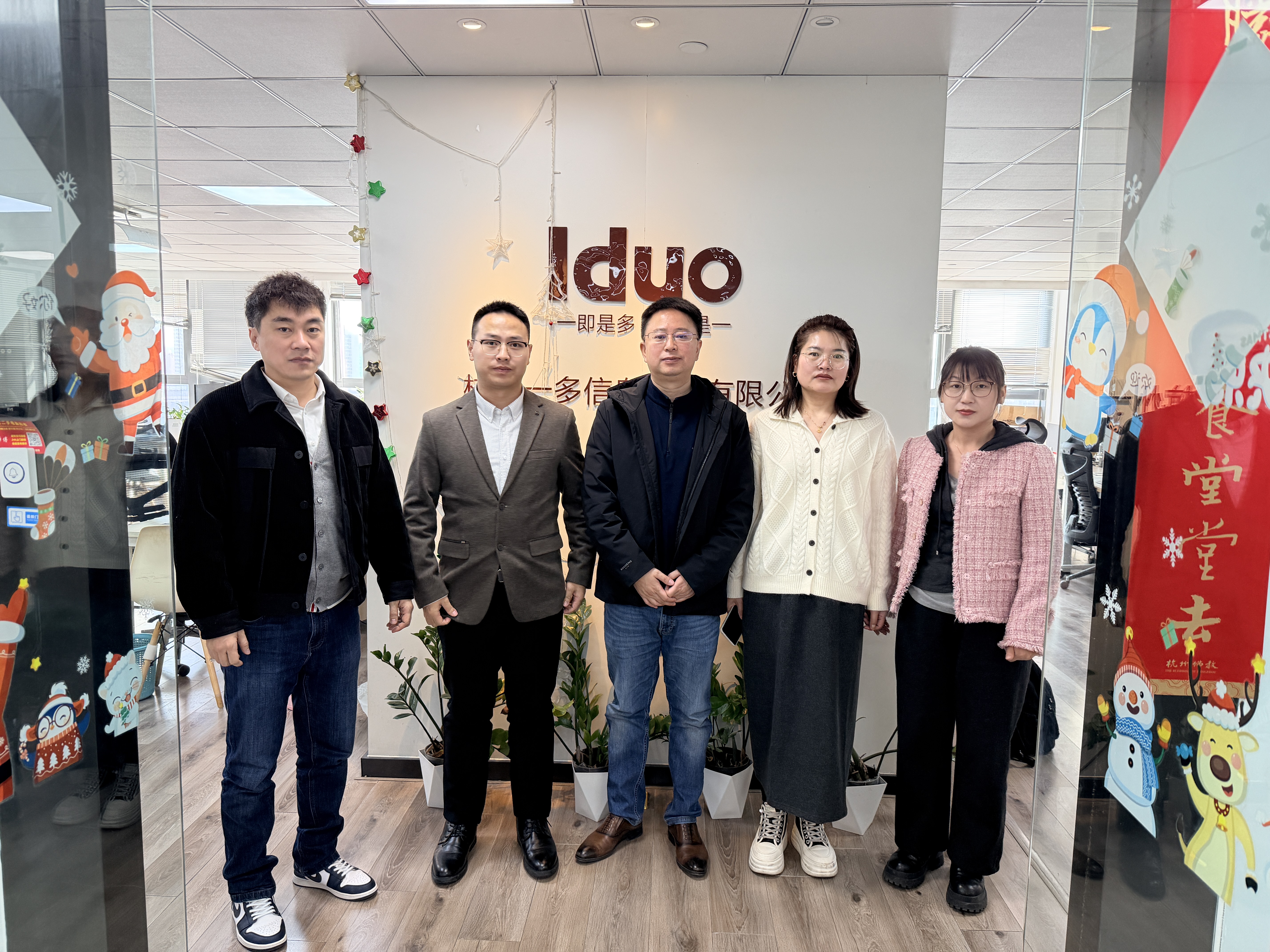 为深化校企合作,精准对接企业人才需求,拓展学生实习与就业渠道,1月12日,数据科学与信息工程学院数据科学与大数据技术系主任王嘉鹏、通信与信息工程系主任丁文飞、计算机科学与技术系副主任马文亭、学生发展中心副主任苏军一行,赴杭州一多信息技术有限公司开展“访企拓岗”专项调研。杭州一多信息技术有限公司董事长吴耀东出席接待并主持座谈。