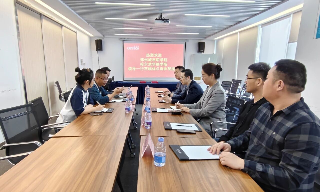 与此同时,副校长魏可霏带领相关学院负责人一行3人,赴深圳市优必选科技股份有限公司开展交流洽谈。副校长魏可霏表示,学校始终坚持以产业需求为导向,深化教学改革,希望通过此次合作,借助企业技术优势,完善实践教学体系,提升学生核心竞争力。深圳市优必选科技股份有限公司教育总监伍平重点介绍了在人形机器人技术研发、专利储备及多场景落地应用上的核心优势,强调了人才培养对企业技术创新和产业升级的重要意义,期待与学校建立全方位、深层次的合作关系。