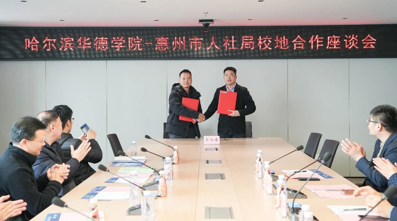 校地双方围绕政校企协同育人模式创新、实习就业基地建设等核心议题展开深入研讨,达成广泛共识。哈尔滨华德学院就业创业中心主任刘博与惠州市人力资源社会保障综合事务中心主任李燕锋签订校地合作协议。