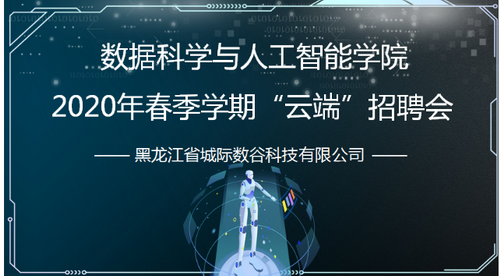 目前正值新冠肺炎疫情防控常态化特殊时期,各企业的线下招聘活动均受到了一定的影响。为了给尚未求职成功的2020届数据科学与人工智能学院的毕业生搭建求职平台,帮助用人单位和毕业生之间实现更好的沟通交流,我院组织2020年春季学期“云端”招聘会——黑龙江省城际数谷科技有限公司专场。