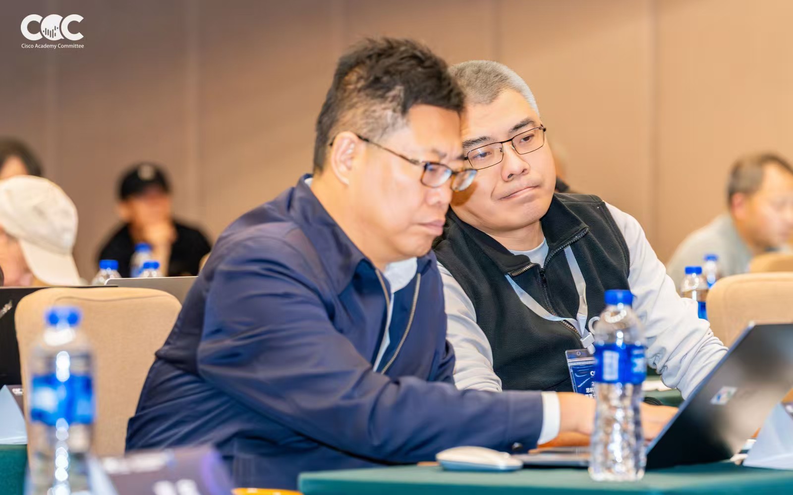 除了专题报告外,姜楠楠副院长与陈欢老师还积极参与了多个重要环节的交流讨论。在“2026思科网院网络技术大赛预告与备赛指南”发布环节,与思科技术专家就赛事准备、训练方法等进行了深入交流。会议期间,两位代表还充分利用茶歇、自助午餐、自由交流等机会,与思科公司高管及各兄弟院校的学科带头人进行了广泛而深入的交流,就人才培养、课程建设、师资培训等多个领域达成了进一步合作的意向。