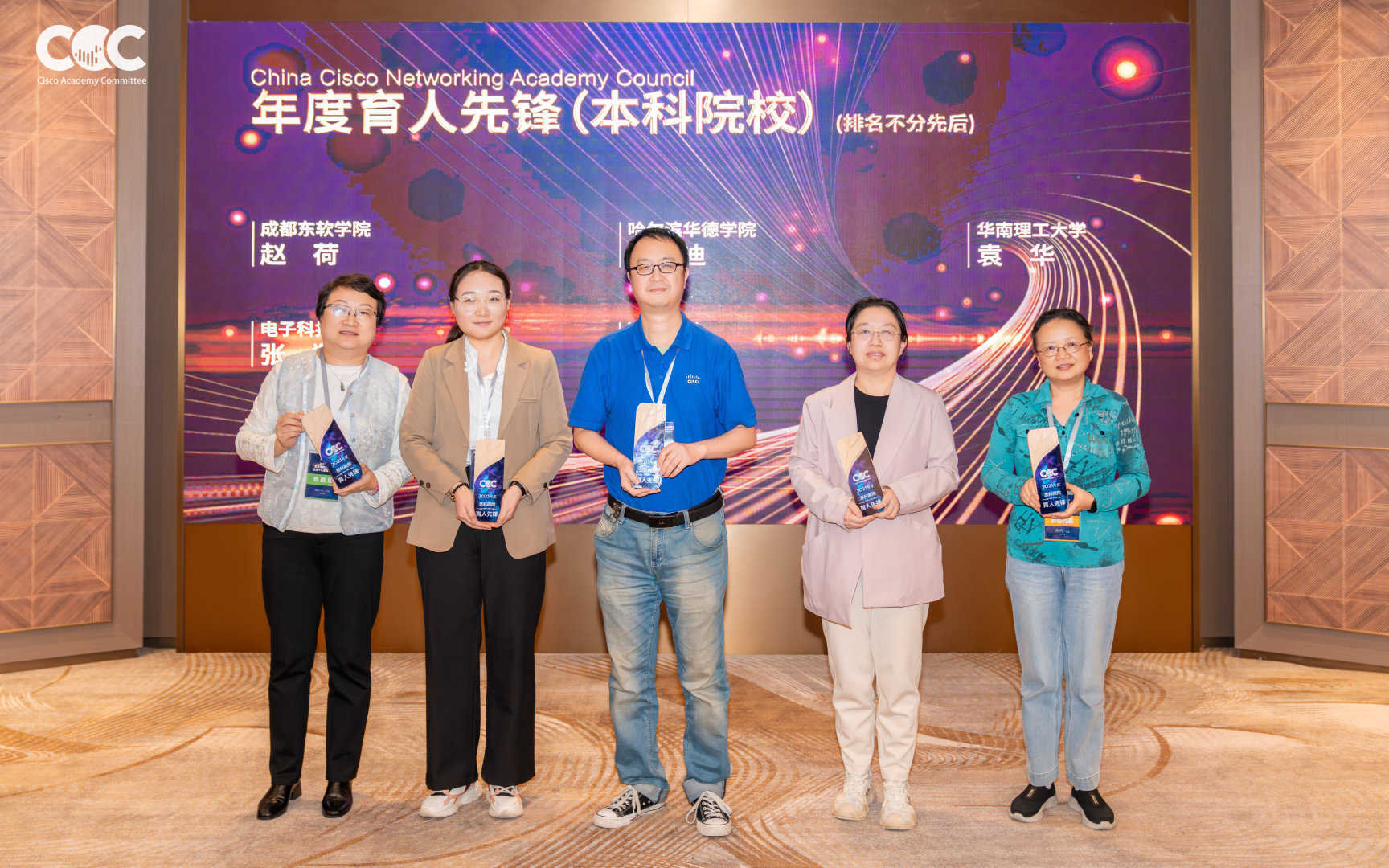在个人奖项方面,哈尔滨华德学院的教育工作者同样表现突出。计算机科学与技术系吴迪老师荣获“2025年度思科网院・育人先锋”称号,体现了其在教学一线以专业学识与教育热忱,引领学子探索技术前沿的师者风范。数据科学与信息工程学院姜楠楠副院长凭借在学科布局深化、校企协同创新等方面的显著贡献,荣获“2025年度思科网院・卓越贡献奖”。值得一提的是,姜楠楠副院长亦受邀担任晚宴主持人,与成都东软学院宁多彪副教授共同执麦以沉稳的专业姿态与优雅的现场表现,赢得满场赞誉。