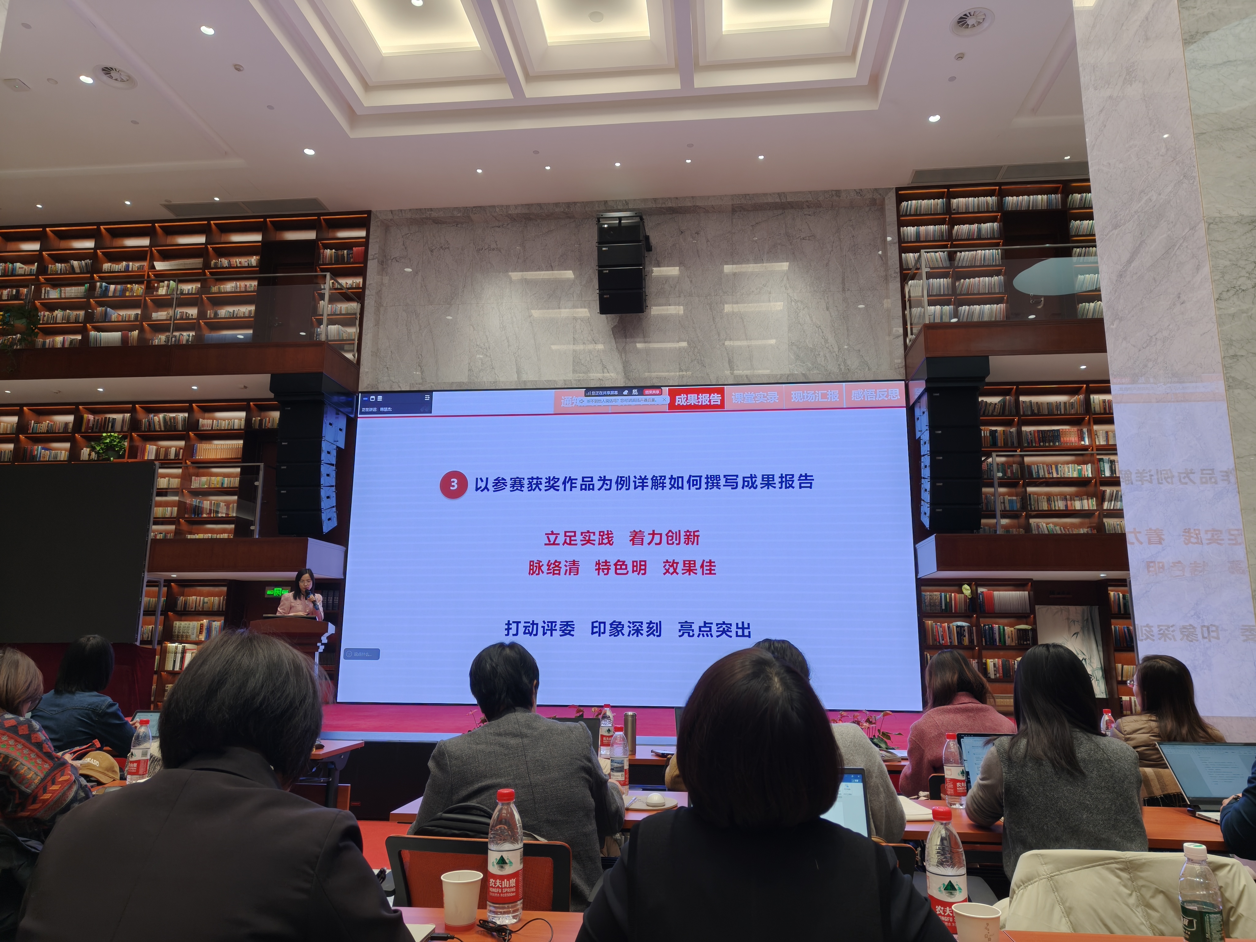 培训最后一日,集团邀请了云南工商学院的胡光英老师进行经验分享。作为第五届教师教学创新大赛国家级二等奖获得者,胡老师以亲身经历,生动讲述了从校赛、省赛到国赛这一路走来的心路历程。她不仅分享了宝贵的实战经验,更传递了坚持不懈、精益求精的竞赛精神,极大地增强了我院教师参与大赛、追求卓越的信心与动力。