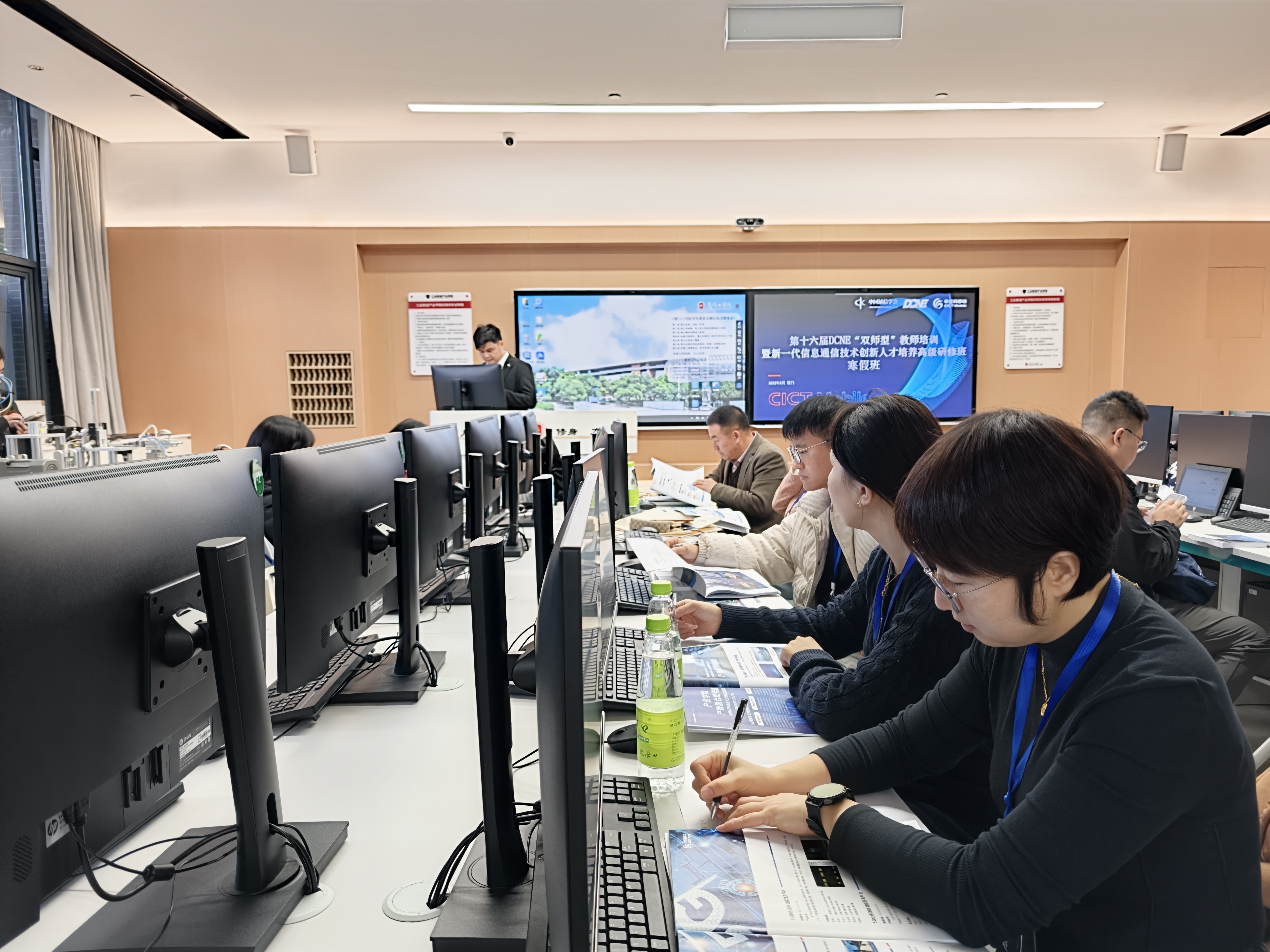本次研修内容紧密围绕信息通信技术前沿与工程教育融合展开,涵盖多个核心模块:一是新一代信息通信技术发展综述,包括5G-A/6G技术演进、网络架构与标准化进展;二是专业基础教学与工程思维能力融合实践,通过真实项目案例解析工程设计、系统构建与问题解决方法;三是通感智算一体化关键技术与典型行业应用,重点探讨低空无人机通信、智能感知与算力协同等前沿场景;四是工程型数据中心技术体系全框架解析,涉及架构设计、运维管理与能效优化等内容。培训形式丰富,融合了权威专家讲座、企业案例研讨、仿真平台实操与小组互动交流,使参训教师不仅深化了对理论体系的理解,更掌握了将产业技术动态转化为教学资源与实训项目的能力。