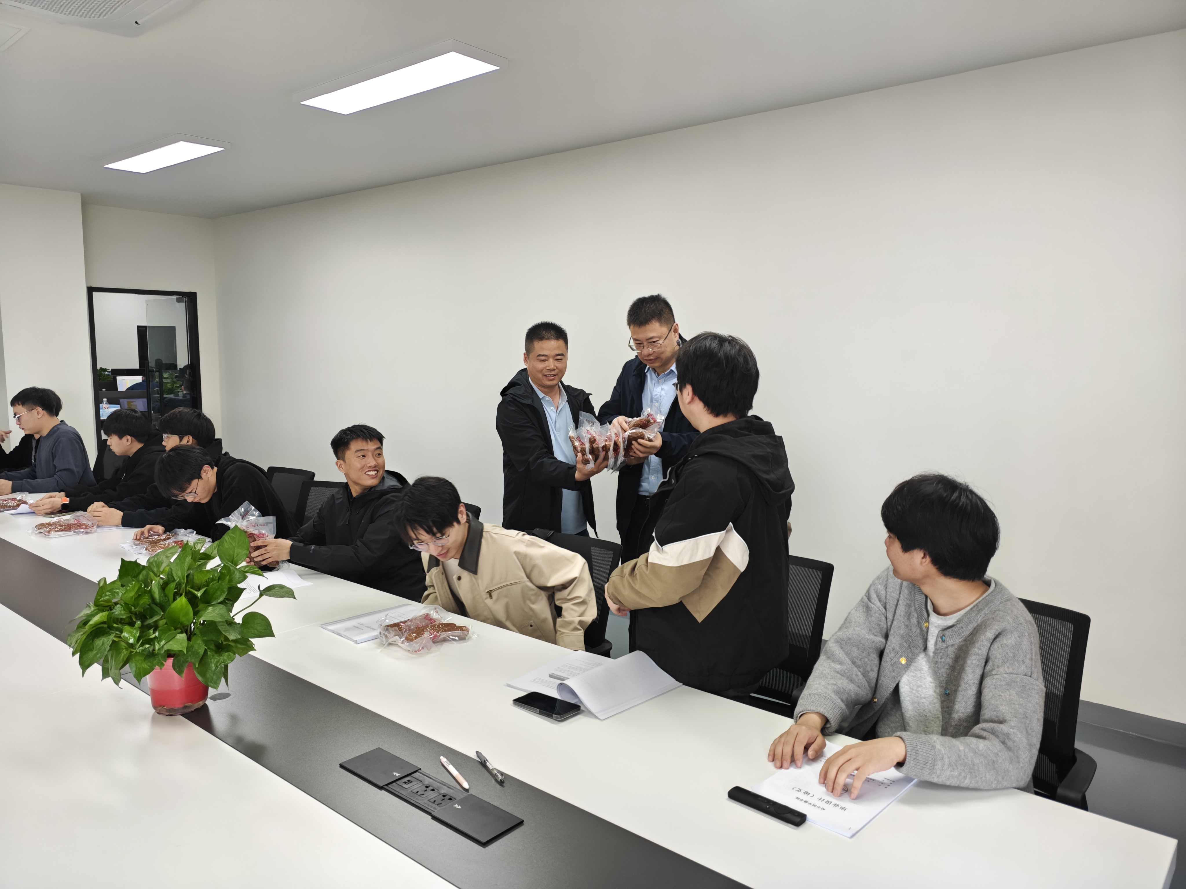 走访过程中,学院一行为远在昆山开发区就业的数据学院学子们送上哈尔滨特色食品里道斯红肠,以浓浓乡情慰藉学子思乡之情,让身处异乡、兼顾工作与毕业论文的同学们倍感母校温暖与惦念。